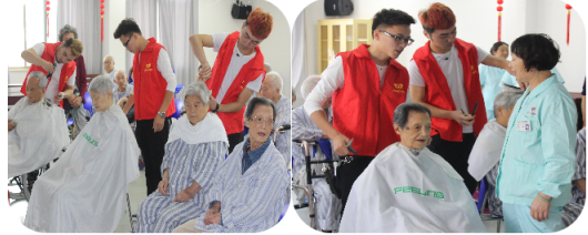 上海视觉造型vision salon美业连锁的造型师们,带着工具在2楼为老人们义务理发,让老人们在这秋高气爽的重阳节舒心的享受小辈的孝心。老人们闻讯而来体验专业造型师的手艺。