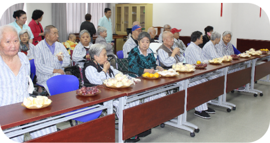 上海同心护理院经过精心的准备,在10月9日重阳节为老人们准备了一系列的敬老活动,并得到了同心护理院所有员工和上海视觉造型vision salon美业连锁的支持。本着服务老人、愉悦老人的中心思想,从早餐开始,食堂精心制作了传统糕点--重阳糕,在院长李珊的带领下送到老人手里,祝福老人们节日快乐,幸福久久。