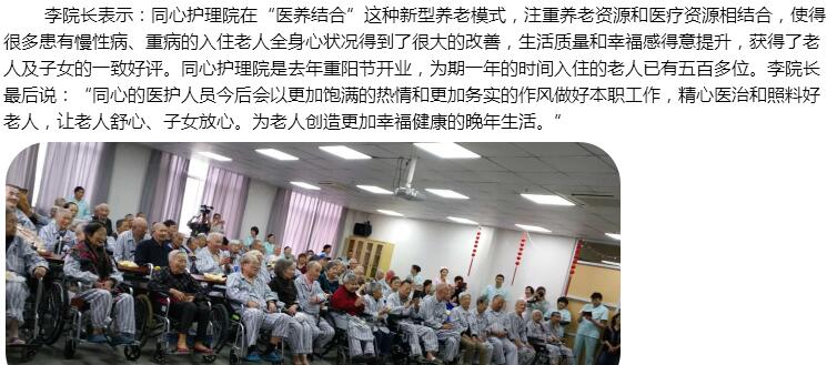 上海同心护理院秉承“仁孝同心”的办院理念和“帮天下儿女尽孝,替世上父母解难,