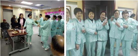 第一个环节是:关爱老人、呵护您的双手;由护士长孙莉莉向病区护工们发放护手霜。护工是我们同心护理院的重要一员,她/他们日夜守护在老人身边,照顾着老人的生活起居、衣食住行。为老人洗脸、擦身、洗脚,协助进食、照顾老人床上排便·····是阿姨和叔叔们的双手让我们的老人每天清清爽爽,干干净净,让我们的病房安静而整洁。因此我们要爱护他们双手,才能更好的服务好每位老人。