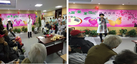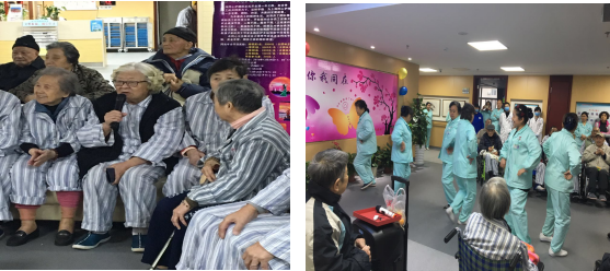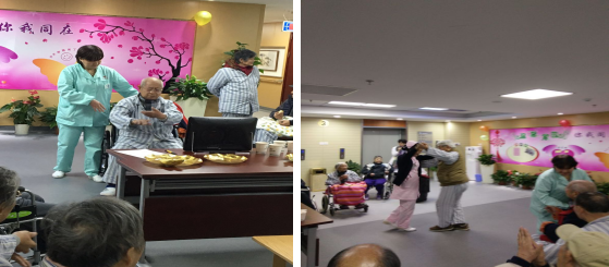 随着年齡的增长身体会出现这样那样的问题,如何让老人平静的接受这些的事实和积极的面对生活就变尤为重要。为了让每个老人都能愉快的生活,我们准备了第二个环节:凝聚力量,共谱老年赞歌。科室医护人员为老人们表演了歌曲«明天会更好»,诗歌朗诵«幸福在路上 »,护工们也都各显身手,舞蹈歌曲一个也不落。科室的老人们跃跃欲试,为我们表演舞蹈、太极。 音乐缓缓而起,他们随着节拍起舞,舞姿如此优雅,舞步如此轻快。再看为我们表演太极的爷爷,看似行云流水,一气呵成,实则柔中带刚,苍劲有力。哪看得出已有古稀的年岁呢?其实老年人的生活也可以和年轻人一样精彩和洒脱。