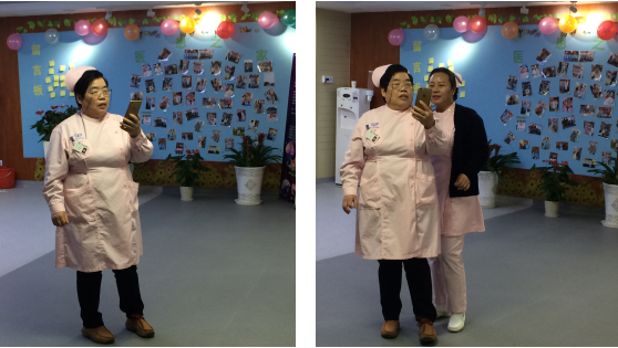 护理部主任也听声而来,看到五病区如此热闹,个个都献出自己的才艺,自己也技痒痒叫来三病区的护士长给我们的老人们跳了一支双人舞蹈。