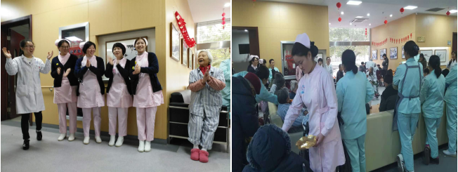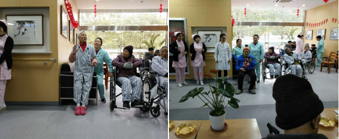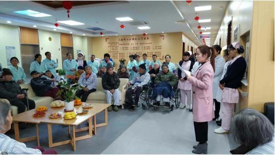最后护士长朱萍补充到关于感染性消毒隔离的知识,朱老师说:只要我们把消毒工作做好,做到位就不怕被传染到。茶话会不仅仅是讲课,还有娱乐节目,护理员阿姨翩翩起舞的舞蹈、老人们的歌曲和新年致辞,护士的歌曲等,让整个茶话会其乐融融。