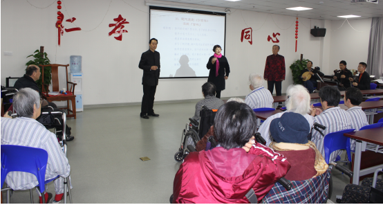 “我家的表叔数不尽,没有大事不登门,虽说是,虽说是亲眷却不相认,可他比亲眷还要亲.....”《红灯记》的唱段响起在上海同心护理院的活动中心,闵行区京剧票友协会的会员们为住院的老人们带来了大家耳熟能详的京剧唱段。
