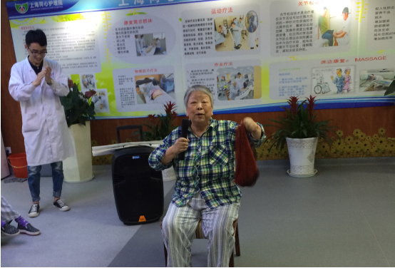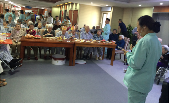 精彩的节目自然是不能少的,老人们边吃蛋糕边看节目,由护工阿姨们演唱的《烛光里的妈妈》和《妈妈的吻》引来了掌声一片。此时大家都想起了自己的妈妈!