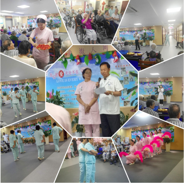 老人们因为我们在这个特殊的日子里以这样特殊的主题举办了活动而十分开心,护工阿姨们精心编排了舞蹈《红梅赞》,园丁朱师傅深情献唱了歌曲《老父亲》,护工王阿姨腼腆地带领在场所有人齐唱了《世上只有妈妈好》,还有《滚滚红尘》、双人舞等节目,蔡医生倾情演唱的歌曲《朋友》更是掀起全场欢呼的热潮。最后,以护士们优美的扇子舞《青花瓷》为活动画上了圆满的句号。