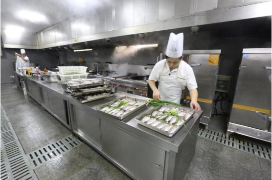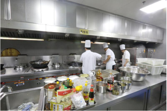 4.6、厨房要保证设备整齐划一,工作台、餐具、炊具、地面、墙面按时消毒、干净无异物。冰箱保持干净卫生,分档分类存放食物(生熟分开、肉类、鱼类、海鲜类等分档分来存放)。