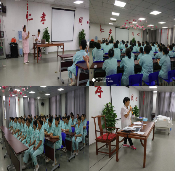 9月15日下午我院护工在二楼活动室进行专业护理技能《床上洗头法》的培训;本次培训由护理部卞老师主持,共分为五个部分,首先是李院长的培训前的讲话。