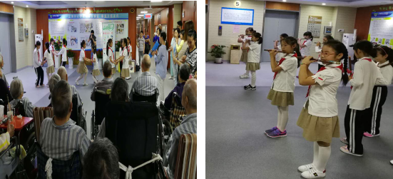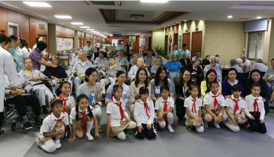 今天罗阳小学的老师和学生们带着才艺和温暖来同心护理院给老人们表演。和老人们一起互动做游戏,赠送手工画,最后一起大合唱《春天在哪里》,迎来阵阵的掌声。表演结束同学们给在场的每位爷爷奶奶送去一份水果和爱心,还和老人们一起合影留念,希望爷爷奶奶们在同心护理院有个开心快乐的晚年,同时要养好身体,希望下次还有机会来看望爷爷奶奶们。