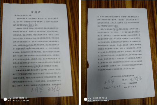 我们医护人员只是做了自己应该做的事情却得到患者家属的褒奖,我们的工作得到了患者家属的认可并感动了他们,而这封表扬信也深深感动着我们。我们科室也将此作为一种鞭策和动力,在今后的工作中会更加努力,为患者提供更加优质、安全的医疗、康复、护理服务。为打造品牌护理院做出应有的贡献。