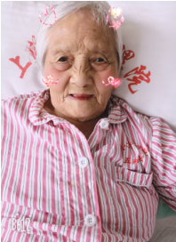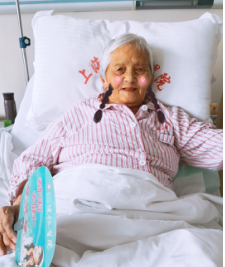 她已经快是一个百岁老人了,但是她依旧精神很好!每次走进她的病房总是看见她倚坐在床上,眼睛睁得大大的看着每个走进她病房的家属、医生、护士、护工阿姨们!