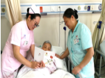 五病区的护士长王书艳拿着早已准备好的贺卡代表5病区所有的员工来到老师们的房间一一问候和祝福,然后开心的合影留念。
