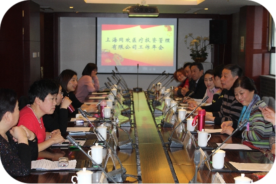 2016年1月10日,烟波浩渺的太湖畔,上海同欢医疗投资管理有限公司的工作年会在西山岛涵园会议厅顺利召开。同心护理院的各科室负责人出席并轮流发言,热烈讨论,回顾了2015年对于本职范围内工作的总结,对2016年的工作开展进行计划。李珊院长就同心护理院在2015年从开始筹备到2015年8月10日开业再到2016年1月8日医保的线路开通,进行了总结性的发言,肯定了同心护理院的所有员工在这一时间内的付出,但是因为经验等各自问题都有很多的不足,希望在2016年度,在各自的岗位上发挥更好的作用,积极学习,开拓创新,为同心护理院在新开张的一年里做出亮眼的成绩。最后同欢医疗投资管理有限公司的董事长程庆宇对同心护理院2016年提出了期许,希望同心护理院在所有员工的共同努力之下打开新的篇章。