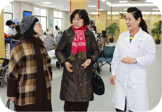 在二楼的“康复治疗中心”,做为康复医学权威的陈教授就同心护理院现有的康复设备和康复项目提出了建议,未来的发展方向,针对老年人的康复,尤其是对慢性病的康复(高血压、糖尿病、冠心病、慢阻肺...)、老年痴呆、肩颈腰腿疼痛、长期卧床病人、肿瘤病人,提出了很多针对性的康复治疗建议。李珊院长表示:老年康复将作为同心护理院的发展方向,为老人提供全面、科学、系统、正规的康复治疗,最大限度的减轻功能障碍症状,提高老人的生存质量。