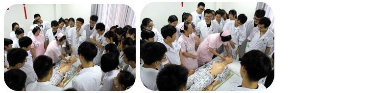 定位:右手食指在两乳头间划线,选择连线与胸骨正中线交叉点,左手掌跟置于交叉点,再将右手叠加之上,手指锁住,交叉抬起。