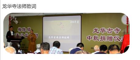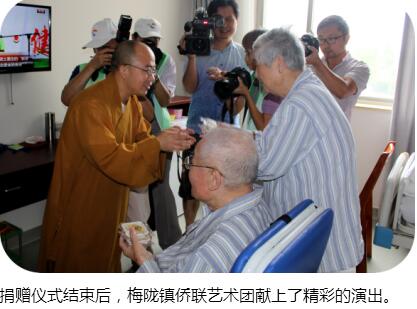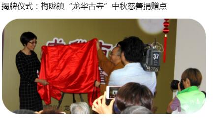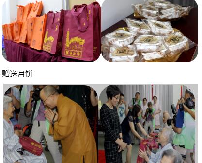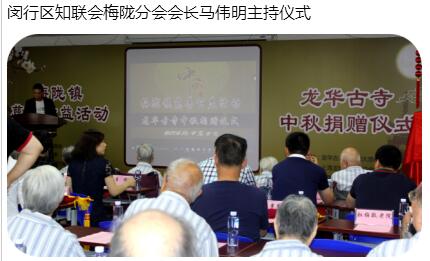 梅陇镇人民政府主办,梅陇镇老龄委、闵行区知联会梅陇分会、梅陇镇永联村民委员会、上海同心护理院承办。龙华古寺(上海大慈公益基金会)、上海龙华素斋禅悦食品有限公司向梅陇镇的90岁以上老人捐赠“龙华素斋”中秋月饼。