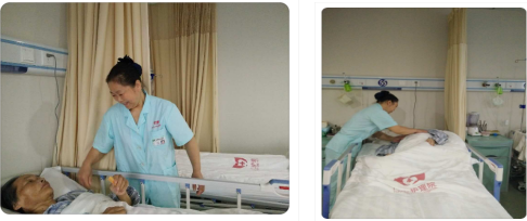 四病区的护工阿姨郑良芝在照顾老人各方面做得尤为突出。郑阿姨照顾的六位老人中,有一位老人刚入院老人臀部皮肤多处散在二期压疮,另一位老人臀部可见三期压疮,在郑阿姨悉心照料下,两位病人压疮情况均在半年内全部愈合,夜班护士半夜巡视病房常常听到病房内轻轻的翻身拍背声,病人家属都直夸郑阿姨好。“一个字,好。脾气好、人好,有耐心,动作利索。”郑阿姨表示怪不好意思的,“其实老人们都有脾气,老人都跟小孩一样,这份工作我一干就是9年,没耐心、没爱心可干不了。24小时照顾老人,照顾时间长了都跟家人一样,哪个老人什么脾气哪儿疼比老人的亲人还清楚。”所以做好护工不仅仅是有力气能干活,时时刻刻带着一颗亲和善良有爱的心去照顾老人